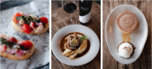 Principal: Matambre Enrolado sobre purê de papa com abacaxi maçaricado